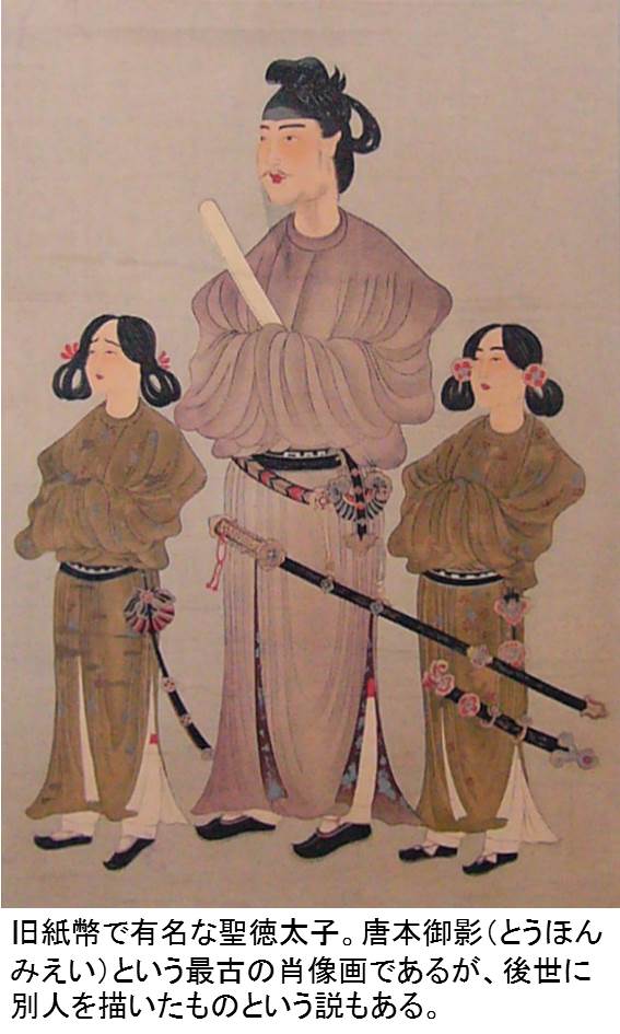 聖徳太子は574年、用明天皇の第二皇子として生まれました。推古天皇のもと遣隋使を派遣して大陸の文化を取り入れるとともに、冠位十二階や十七条憲法を定め中央集権国家体制を確立していったと伝えられています。蘇我氏と物部氏の争いで蘇我氏と協調する立場にあったことなどもあり、仏教を深く信仰し593年、四天王寺を建立したといわれます。これは太子が法隆寺を建立したとされる607年より以前のことです。